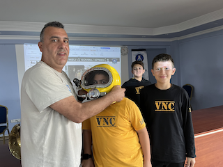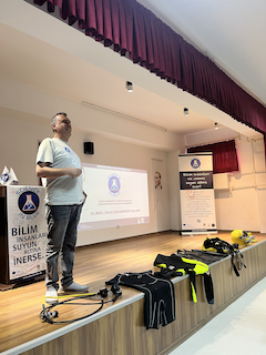 Vali Necati Çetinkaya Ortaokulu’nda AB Projesi “Science in Blue” Kapsamında “Sualtında Hızlı ve Güvenli Çalışma” EtkinliğiVali Necati Çetinkaya Ortaokulu’nda, AB projesi “Science in Blue” çerçevesinde, öğrencilerin dalış ve sualtı çalışmalarında hız ve güvenliği keşfetmelerini amaçlayan “Sualtında Hızlı ve Güvenli Çalışma” konulu özel bir etkinlik düzenlendi. Etkinlikte öğrenciler, profesyonel dalış tekniklerini, ekipman kullanımını ve sualtında etkin veri toplamanın yöntemlerini öğrenme fırsatı buldu.Sunumlar, Galatasaray Üniversitesi’nden Dr. Öğretim Üyesi Tamer Özyiğit ve Boğaziçi Sualtı Araştırma Merkezi’nden Ebru Öksüz tarafından gerçekleştirildi. Sunumlarda, dalış sırasında güvenliği artıran yöntemler, acil durum yönetimi ve hızlı hareket etmenin sualtı çalışmalarındaki önemi örneklerle anlatıldı. Öğrenciler ayrıca maskeler, paletler, dalış elbiseleri ve dalış tüpleri gibi ekipmanları yakından inceleme ve deneme fırsatı buldu.Etkinlik boyunca, bilim insanları, mühendisler ve dalış uzmanlarının sualtı araştırmalarında birlikte çalışmasının önemi vurgulandı. Gelecekte bu alanda çalışmak isteyen öğrenciler için dalış bilimi, sualtı teknolojileri ve çevre koruma konularında ilham verici bilgiler paylaşıldı.“Sualtında Hızlı ve Güvenli Çalışma” etkinliği, Vali Necati Çetinkaya Ortaokulu öğrencilerinin bilimsel farkındalığını artırdı ve güvenli bir şekilde sualtı çalışmalarına nasıl katkı sağlayabileceklerini öğrenmelerini sağladı; öğrenciler, gelecekte deniz ekosistemlerinin korunmasına destek olacak bilinçli bireyler olmaya teşvik edildi.