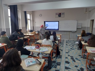 “Mavide Bilim” projesinin İçanadolu Bölgesi'ndeki okul ziyaretleri kapsamında 20 Ekim 2025 tarihinde Pazartesi günü saat 10:00'da, Kayseri ili sınırları içerisinde yer alan Kocasinan 75. Yıl Cumhuriyet Anadolu Lisesi’nde bir etkinlik düzenlenmiştir. Ziyaret proje ekibinden Alper Yıldız ve Emine Şükran Okudan tarafından yapılmıştır. Etkinlikte Emine Şükran Okudan “Göllerde yaşam” başlıklı bir sunum yapmıştır. Etkinlik, okulun bir sınıfında bir öğretmen ve 20 öğrencinin katılımıyla gerçekleştirilmiştir. Okul yönetimi çok ilgili ve kolaylaştırıcı davranış sergilemişler ve bu sayede Alper Yıldız etkinlik salonunu hızlı bir şekilde hazırlayabilmiştir. Kocasinan 75. Yıl Cumhuriyet Anadolu Lisesi, Kayseri’nin Kocasinan ilçesinde yer alan köklü bir eğitim kurumudur. Gelişen ve değişen dünyanın beklentilerine cevap vermeyi hedefleyen okul, eğitimde kaliteden ödün vermeyen, saygın ve tercih edilen bir kurum olma vizyonuyla çalışmalarını sürdürmektedir. Atatürk ilke ve inkılaplarını rehber edinen okul, öğrencilerini maddi ve manevi değerlerini koruyan, öz güveni yüksek, bilgiye ulaşabilen ve topluma katkı sunan bireyler olarak yetiştirmeyi amaçlamaktadır. 25 derslik, 60 öğretmen ve 1038 öğrenciyle eğitim veren kurumda İngilizce birinci, Almanca ise ikinci yabancı dil olarak öğretilmektedir. Modern eğitim imkânları arasında konferans salonu, spor salonu, kimya laboratuvarı ve yaklaşık 5000 kitaplık zengin bir kütüphane yer almaktadır. Normal ve tekli öğretim sistemiyle eğitim veren Kocasinan 75. Yıl Cumhuriyet Anadolu Lisesi, öğrencilerini hem akademik hem de sosyal yönden donanımlı bireyler olarak geleceğe hazırlamaktadır.Etkinliğe katılan öğrencilere ilk olarak “Bilim İnsanları Sualtına Ne Zaman Dalar?” Mavi Bilim Projesi tanıtılmıştır. Ardından sunumu gerçekleştiren Dr. Emine Şükran Okudan, dalışa nasıl başladığını ve gerçekleştirdiği bilimsel dalışları anlatarak genç katılımcılarda sualtı dünyasına ve dalışa karşı merak ve ilgi uyandırmayı hedeflemiştir. R5. MPA-ENGAGE referans projesi hakkında bilgi verilmiş ve etkinlikle olan ilgisi vurgulanmıştır. Bu girişin ardından sunum başlamıştır. Sunumda Göllerin oluşumu, göl tipleri, gölde bulunan canlılar ve bunların oluşturdukları besin zincirleri, gölde yaşamı etkileyen faktörler, gölde yaşamı tehdit edein faktörler, göllerde yaşamın korunması için alınması gereken önlemler konuları anlatılmıştır. Sunumun ardından öğrenci ve öğretmenler ile bir soru-cevap oturumu gerçekleştirilmiştir. Katılımcılar bu oturumda, göllerde yaşam ve biyoçeşitlilik ile ilgili sorular yöneltmişlerdir. Dr. Emine Şükran Okudan sunumda ele alınan konulara açıklık getirerek detaylı cevaplar vermiştir. Sunum tamamlandıktan sonra öğrenciler değerlendirme anketini doldurmuşlardır.
