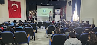 Akçakoca Süha Güven Turizm Mesleki ve Teknik Anadolu Lisesi’nde, 15 Aralık 2025 Pazartesi günü saat 15.00’te Galatasaray Üniversitesi’nden Pınar Uluer ve Eda Bahar’ın katılımıyla bilimsel dalış ve akademide kariyer yollarına odaklanan bir sunum gerçekleştirildi, bu sunuma 50 lise öğrencisi ve 5 öğretmen katıldı.Etkinlik kapsamında öğrencilere öncelikle Mavide Bilim projesi tanıtıldı; projenin amacı ve bugüne kadar hayata geçirilen faaliyetler paylaşıldı. Sunumda sualtı çalışmaları ve mavi ekonomi kavramları ele alınarak, bu alanların ülkenin kalkınmasına olan katkıları vurgulandı.Sunumun devamında dalışın kısa tarihçesi, dalgıçların kullandığı temel ekipmanlar, bilimsel dalışın temel prensipleri, sualtı araştırmalarında kullanılan yöntemler ve robotlar ile bu alandaki olası kariyer yolları hakkında bilgi verildi. Bu etkinlikte, öğrencilerin sualtı bilimlerine olan ilgisini artırmak, STEAM alanlarıyla bağlantı kurarak gelecekteki kariyer planlamalarına destek olmak amaçlandı. Etkinliğe katılan öğrenciler araştırmacılara, bilimsel dalışın fiziksel ve dinamik temelleri, su altında robot kullanımına dair uygulamalar ve ilgili alanlarda eğitimlerine nasıl devam edebilecekleri konusunda sorular yöneltti.
