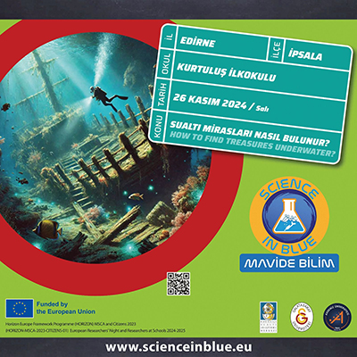 Mavi Bilim Projesi kapsamında, Galatasaray Üniversitesi’nden Tamer Özyiğit ve Murat Egi ile BURC’dan Burak Tekdamar, 26 Kasım 2024 tarihinde Kurtuluş İlkokulu’nu ziyaret etti. Ekip, sabah saat 9:00’da okul yönetimi ile bir toplantı yaptı ve ardından sergi alanı kurularak materyaller idare binasının girişine yerleştirildi.Etkinlik sırasında Tamer Özyiğit, "Sualtı Hazinelerini Nasıl Buluruz?" başlıklı bir sunum yaptı. Sunuma 1. ve 2. sınıf öğrencilerinden oluşan bir grup ile 3. ve 4. sınıf öğrencilerinden oluşan diğer grup katıldı. Toplamda yaklaşık 45 öğrenci etkinliğe katıldı.Sunumda, öğrencilere su altı arkeolojisi, dalış ekipmanları ve su altı robot teknolojileri hakkında bilgiler verildi. Sergi materyalleri interaktif bir şekilde tanıtıldı. Öğrenciler, su altı arkeolojisinde kullanılan ekipmanlar ve robotlar hakkında detaylı bilgi edindiler. Ayrıca, su altından çıkarılan amforalar ve tarihsel kullanımları hakkında bilgilendirildiler.Bu ziyaret, öğrencilerin su altı dünyasına ve arkeolojiye olan ilgilerini artırarak, bilimsel alanlarda farkındalıklarını pekiştirdi. Etkinlik sonunda, her katılımcı öğrenciye hediye takdim edildi.